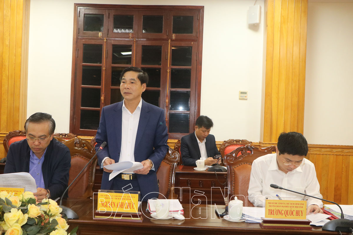 Đồng chí Nguyễn Anh Chức, Ủy viên BTV Tỉnh ủy, Phó Chủ tịch Thường trực UBND tỉnh báo cáo các nội dung xin ý kiến BTV Tỉnh ủy.