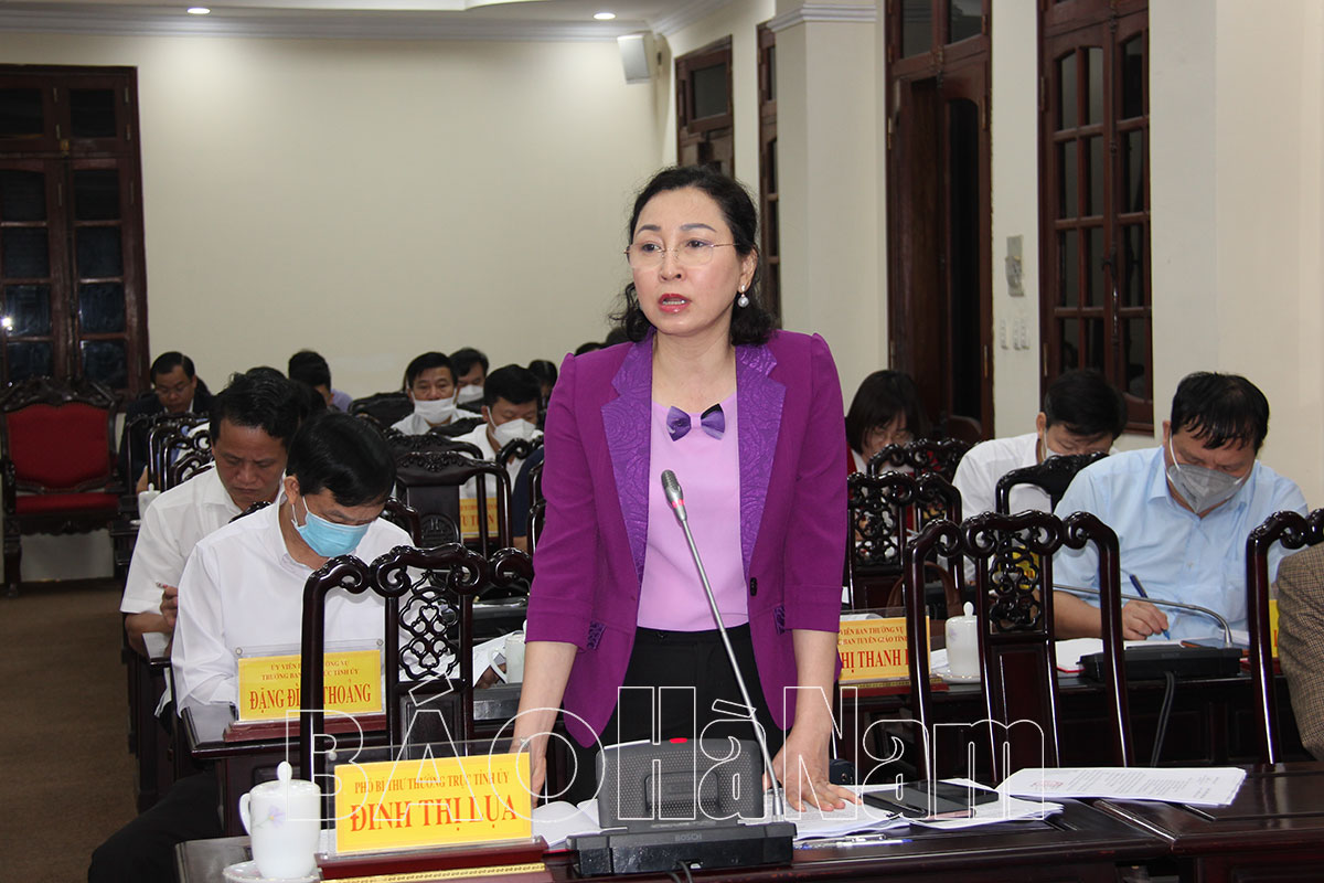 BTV Tỉnh ủy cũng đồng ý với chủ trương thực hiện điều chỉnh KCN ở Duy Tiên và dịch chuyển vị trí phù hợp quy hoạch chung của thị xã; thống nhất bãi bỏ Quy định số 917-QĐ/TU ngày 26/1/2015 của BTV Tỉnh ủy quy định về các vụ án, vụ việc các cơ quan bảo vệ pháp luật báo cáo, xin ý kiến chỉ đạo của BTV Tỉnh ủy, thống nhất thành lập Ban Chỉ đạo phòng, chống tham nhũng, tiêu cực cấp tỉnh; thống nhất với các nội dung chuẩn bị tổ chức Đại hội đại biểu phụ nữ tỉnh lần thứ XVII, nhiệm kỳ 2021-2026.