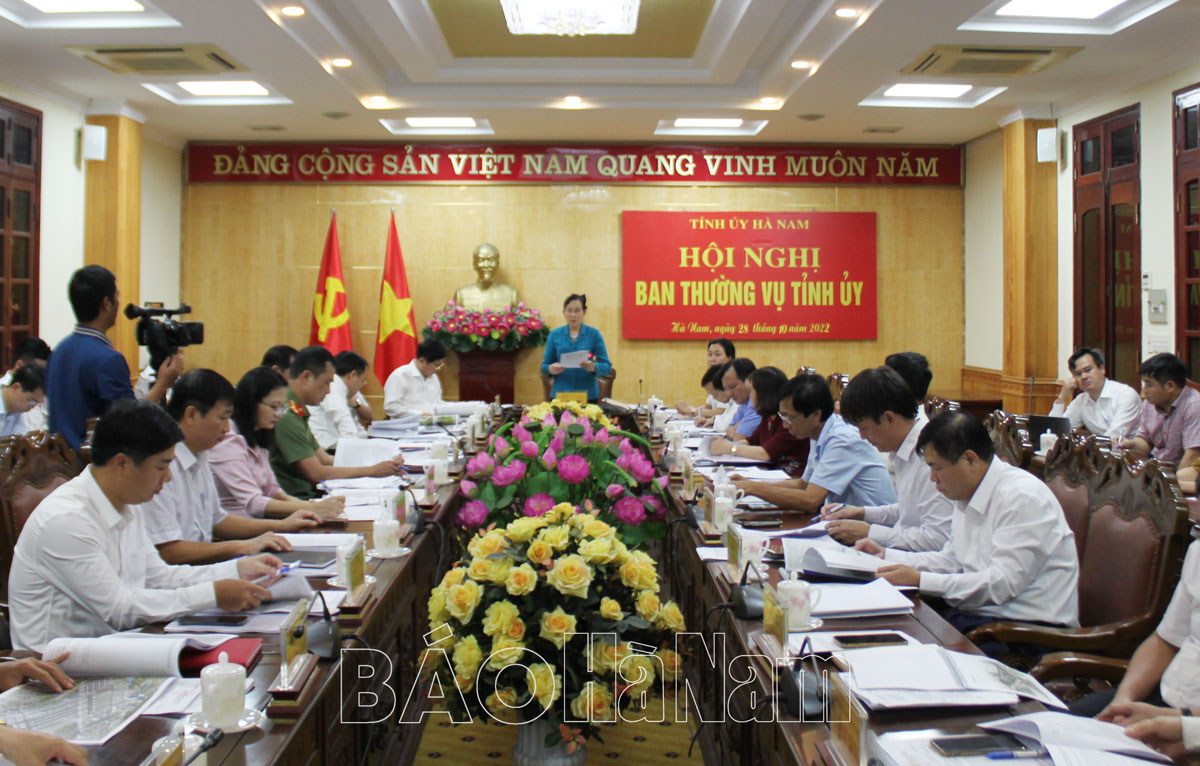 Tại hội nghị, Ban Thường vụ Tỉnh ủy đã nghe các đơn vị tư vấn báo cáo ý tưởng, nội dụng các đồ án phân khu tỷ lệ 1/2000: khu Đông Bắc nút giao Phú Thứ (thị xã Duy Tiên); khu vực phía Đông Bắc thuộc Đô thị Thái Hà (Lý Nhân); phân khu phía Bắc thuộc điều chỉnh, mở rộng quy hoạch chung đô thị Nhân Mỹ (Lý Nhân).