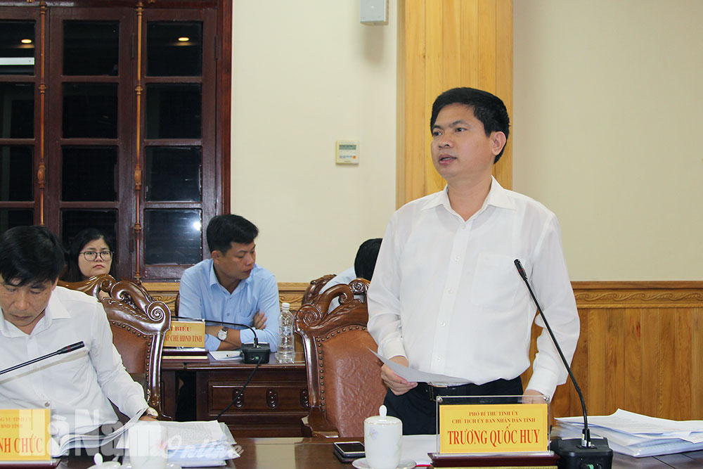 Đồng chí Trương Quốc Huy, Phó Bí thư Tỉnh ủy, Chủ tịch UBND tỉnh phát biểu tại hội nghị.