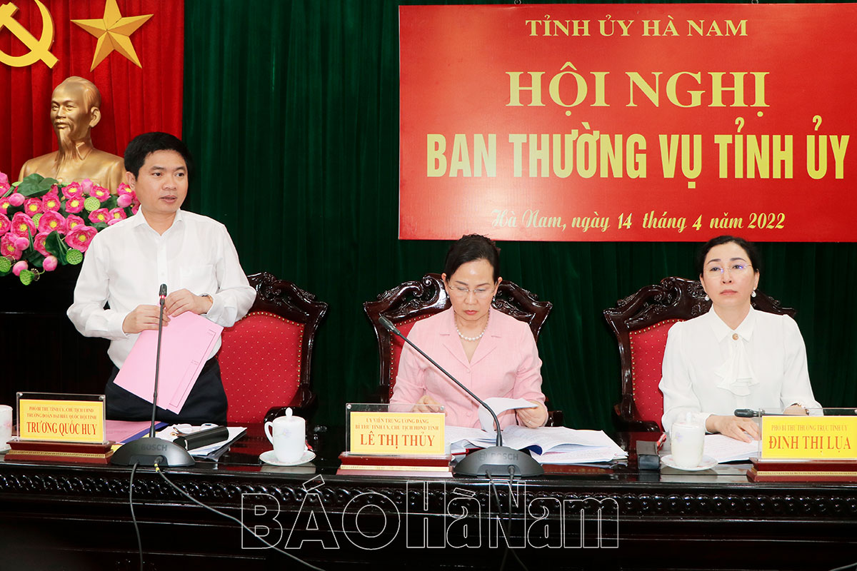 Các đồng chí: Lê Thị Thủy, Ủy viên Trung ương Đảng, Bí thư Tỉnh ủy, Chủ tịch HĐND tỉnh; Đinh Thị Lụa, Phó Bí thư Thường trực Tỉnh ủy; Trương Quốc Huy, Phó Bí thư Tỉnh ủy, Chủ tịch UBND tỉnh, Trưởng Đoàn ĐBQH tỉnh chủ trì buổi làm việc. Cùng dự hội nghị có các đồng chí Ủy viên BTV Tỉnh ủy; lãnh đạo UBND tỉnh; đại diện lãnh đạo các sở, ngành và BTV huyện ủy Lý Nhân.