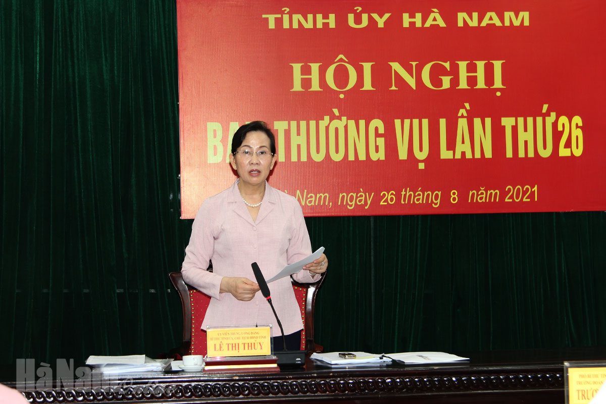 Đồng chí Lê Thị Thủy, Ủy viên Trung ương Đảng, Bí thư Tỉnh ủy, Chủ tịch HĐND tỉnh phát biểu kết luận buổi làm việc sáng ngày 26/8.