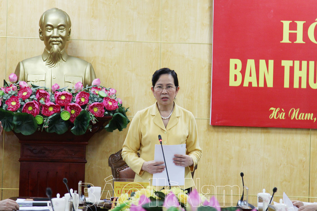 Phát biểu kết luận hội nghị, đồng chí Lê Thị Thủy, Ủy viên Trung ương Đảng, Bí thư Tỉnh ủy, Chủ tịch HĐND tỉnh thống nhất với ý kiến, nội dung được báo cáo xin ý kiến, chủ trương tại hội nghị. Đồng chí Bí thư Tỉnh ủy đề nghị Ban Cán sự Đảng UBND tỉnh, các ban, ngành liên quan tiếp thu ý kiến của các đại biểu, bám sát sự chỉ đạo của Trung ương, BTV Tỉnh ủy, các văn bản quy định của Trung ương, cấp ủy, chính quyền các cấp tập trung lãnh đạo, chỉ đạo triển khai thực hiện đảm bảo đúng quy định. Mặt khác, các ủy viên BTV Tỉnh ủy, lãnh đạo các cơ quan, ban, ngành, đơn vị liên quan cần phát huy vai trò trách nhiệm, tham mưu, triển khai thực hiện hiệu quả các nội dung đã nêu trong hội nghị.