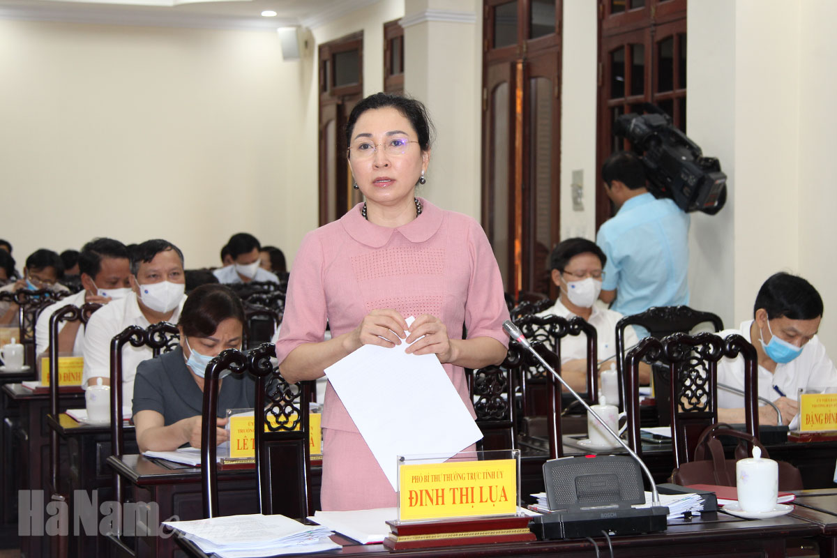 Cũng tại hội nghị, đồng chí Đinh Thị Lụa, Phó Bí thư Thường trực Tỉnh ủy đã trình bày dự thảo báo cáo kết quả công tác 6 tháng đầu năm; nhiệm vụ trọng tâm 6 tháng cuối năm 2021 của Tỉnh ủy.