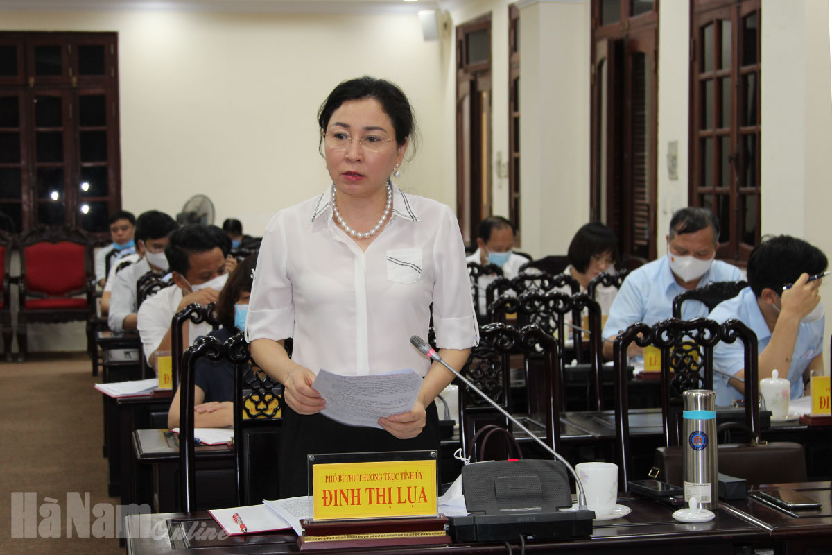 Đồng chí Đinh Thị Lụa, Phó Bí thư Thường trực Tỉnh ủy phát biểu ý kiến tại hội nghị.