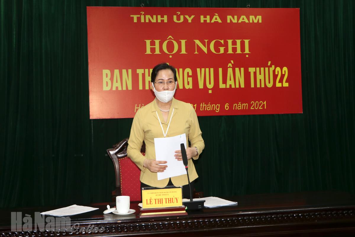Đồng chí Lê Thị Thủy, Ủy viên Trung ương Đảng, Bí thư Tỉnh ủy, Trưởng đoàn ĐBQH tỉnh khóa XIV chủ trì hội nghị. Dự hội nghị có đồng chí Đinh Thị Lụa, Phó Bí thư Thường trực Tỉnh ủy; các đồng chí Ủy viên BTV Tỉnh ủy, lãnh đạo Ban Nội chính Tỉnh ủy, Văn phòng Tỉnh ủy.