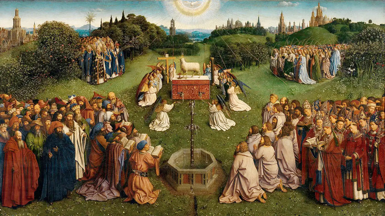 Năm 1432, anh em họa sĩ Van Eyck đã hoàn thành Sự tôn thờ con cừu thần bí kích thước 4,4 x 3,5m gồm 12 tấm mô tả chi tiết nhiều nhân vật và sự kiện trong Kinh thánh. Sau đó, tác phẩm được trưng bày tại Nhà thờ St Bavo ở Ghent, Bỉ.