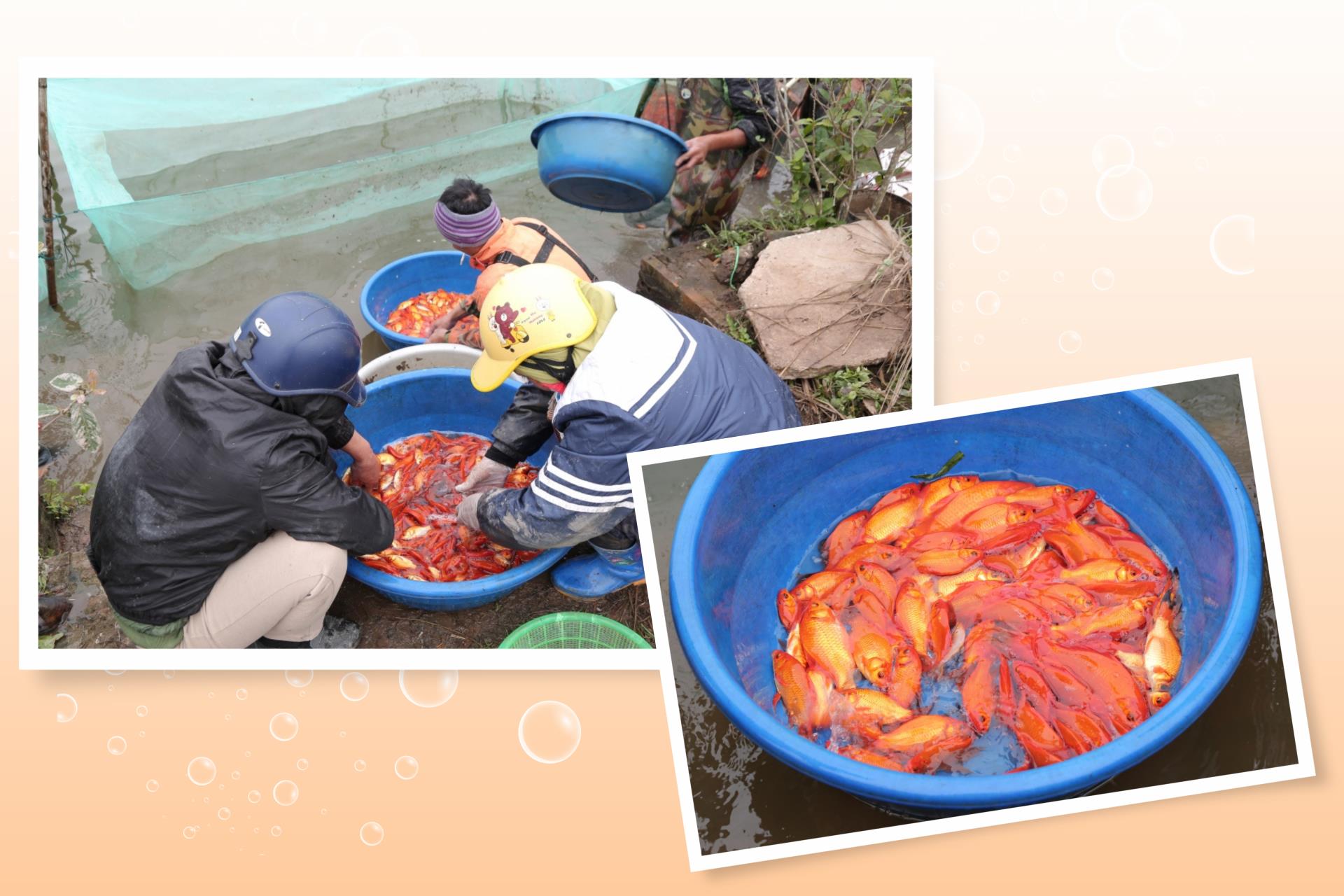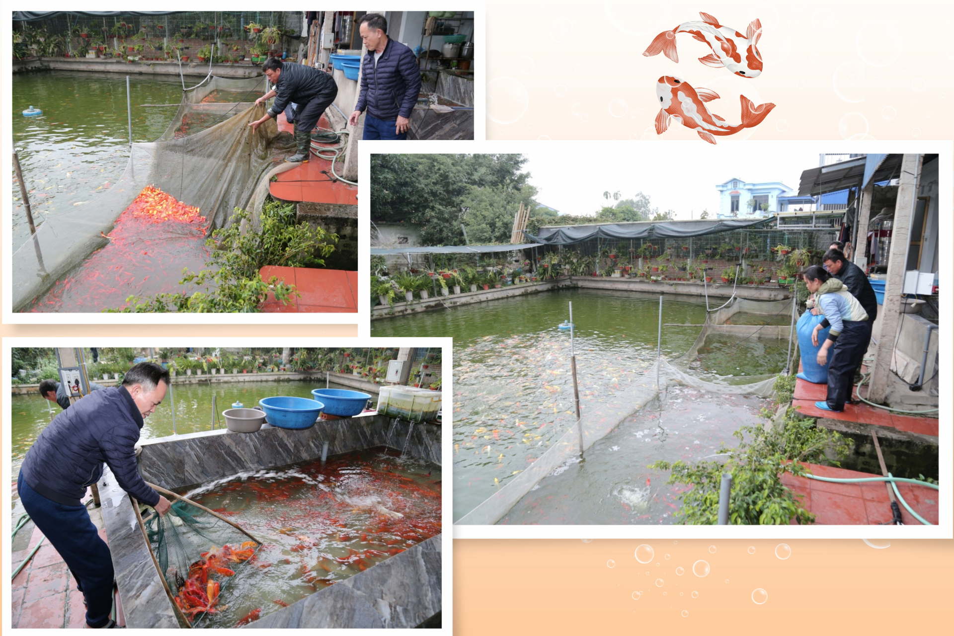 | Gia đình ông Trần Đình Điện, thôn 10 thu hoạch cá chép đỏ từ ngày 10 đến 15-12 âm lịch hàng năm. |