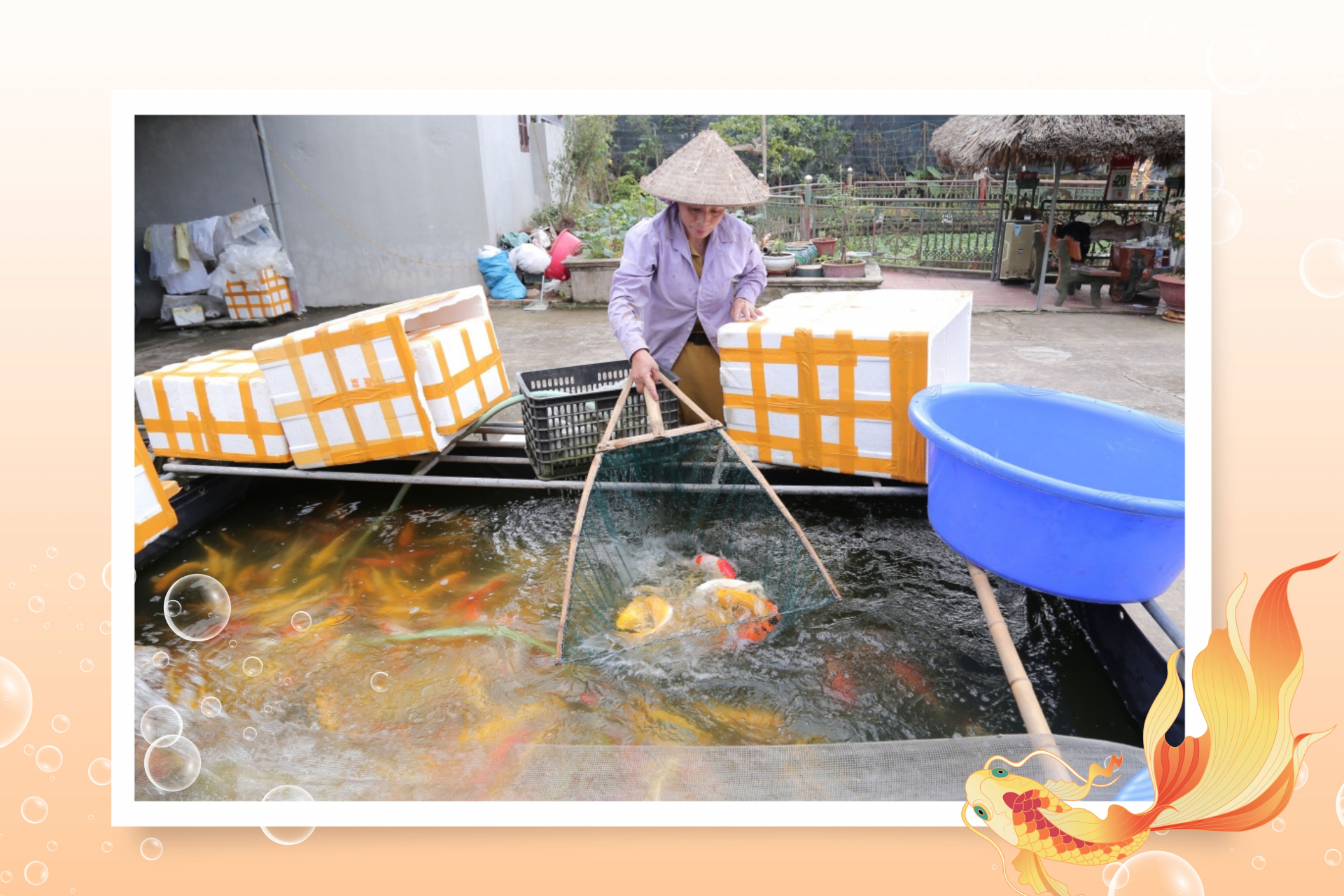 Hiện tại, ông Điện đổ sỉ 1kg cá loại 30-50 con/kg có giá 80-90 nghìn đồng/kg; loại 100 con/kg có giá 60-70 nghìn đồng/kg. “Để có nguồn cá lớn cung ứng cho thị trường dịp ông Công, ông Táo, đầu tháng Chạp, gia đình tôi đã thu hoạch, chuyển cá từ ao nuôi lên bể, xuất đi các đầu mối đã đặt trước. Đầu mối nào không đặt trước mà chờ cận ngày ông Công ông Táo mới xuống mua thì sẽ không có hàng. Gia đình tôi chủ yếu xuất bán cá cho các tỉnh, thành: Hà Nội, Thái Bình, Thanh Hóa, Hải Phòng”, ông Điện cho biết thêm. Cũng theo ước tính của ông Điện, với 7 sào ao, trừ chi phí, mỗi sào sẽ cho thu nhập 40 triệu đồng/sào.