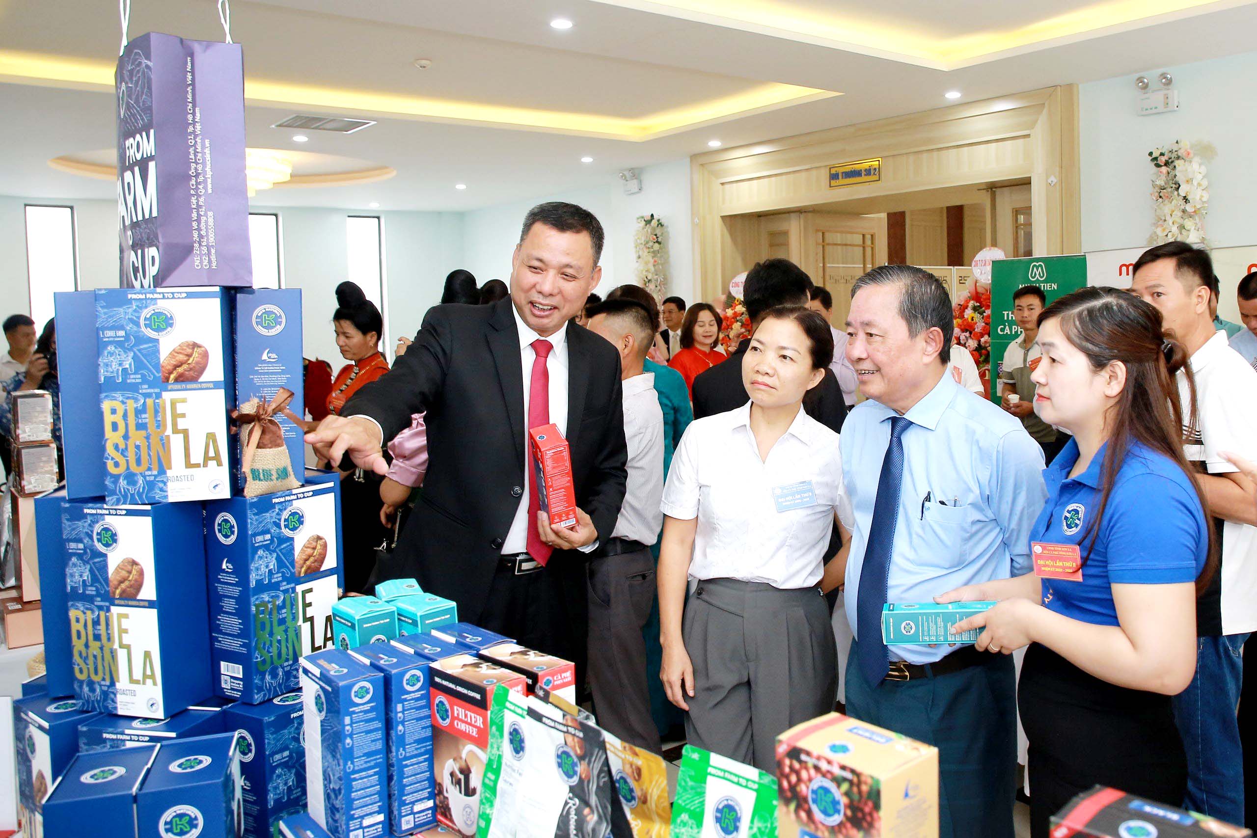 Các đại biểu thăm gian hàng trưng bày sản phẩm cà phê Sơn La.