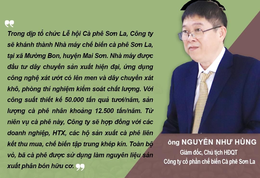 Hiện nay, tỉnh Sơn La thu hút được một số doanh nghiệp, HTX đầu tư xây dựng nhà máy chế biến theo chuỗi liên kết sản xuất, bao tiêu sản phẩm, góp phần đưa thương hiệu “Cà phê Sơn La” ra thế giới.