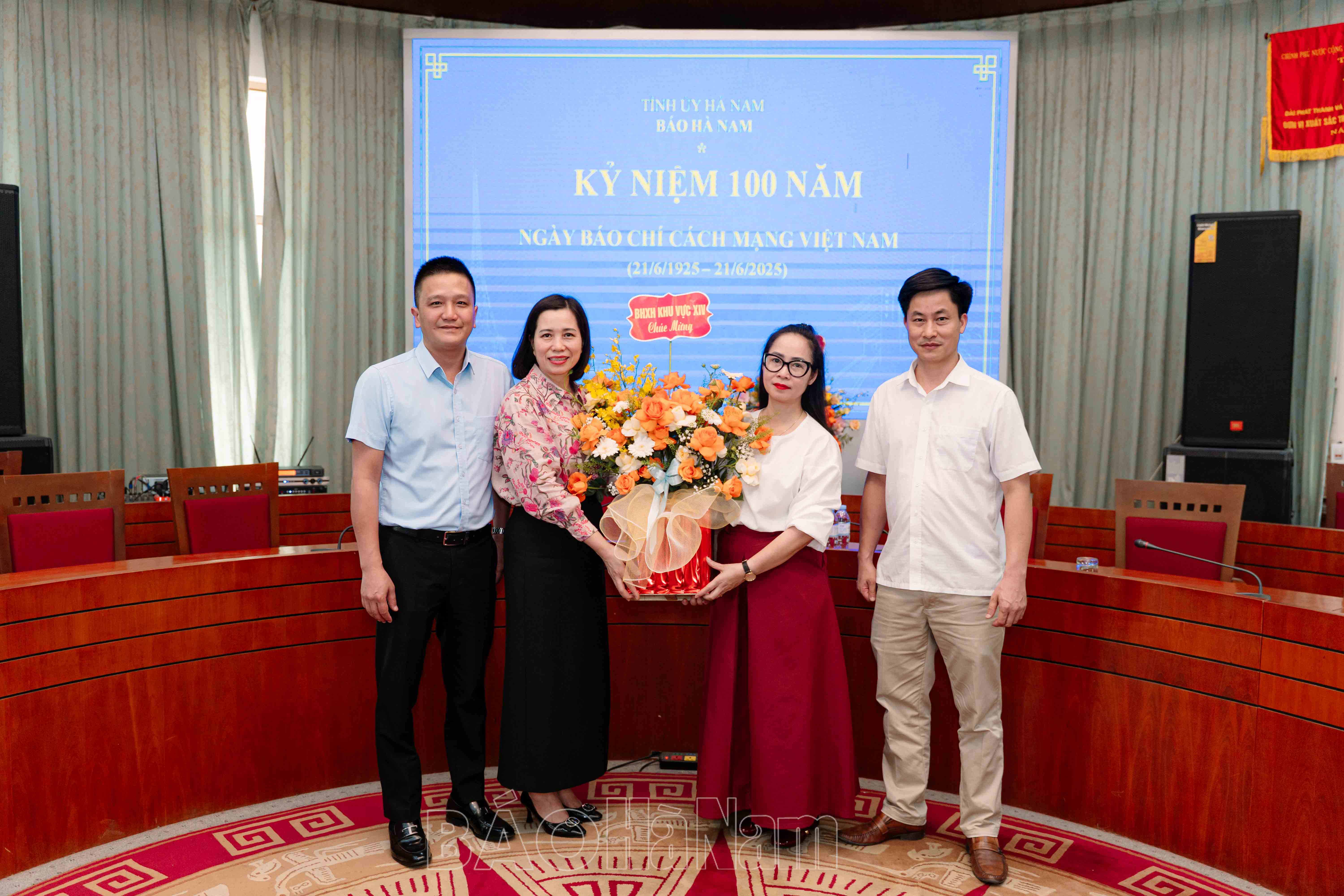 Thị ủy - HĐND - UBND thị xã Duy Tiên tặng hoa chúc mừng Báo Hà Nam. Ảnh: Đức HuyBan Tuyên giáo và Dân vận Tỉnh ủy tặng hoa chúc mừng Báo Hà Nam. Sở Y tế tỉnh Hà Nam tặng hoa chúc mừng Báo Hà Nam.