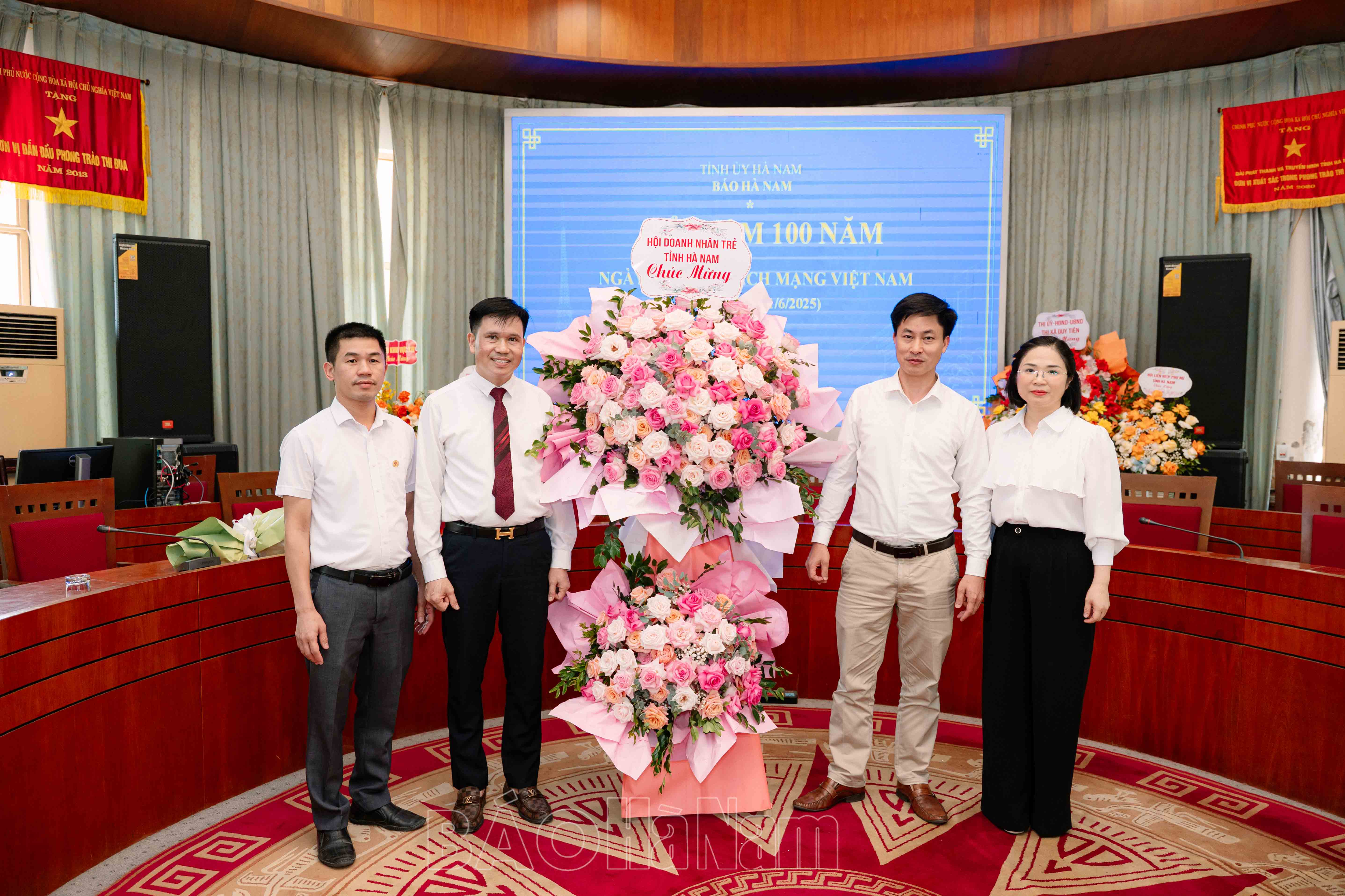 Hội Doanh nhân trẻ tỉnh Hà Nam tặng hoa chúc mừng Báo Hà Nam.