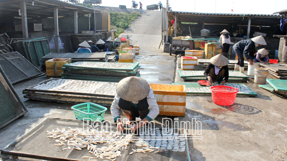 Ngoài hải sản tươi sống, người dân ở các xã ven biển đang tất bật chuẩn bị hàng khô để phục vụ nhu cầu thị trường dịp cuối năm và tết. Xã Hải Lý (Hải Hậu) là địa phương sản xuất cá khô nổi tiếng với các loại cá mai, cá đù, tôm…. Toàn xã có 6 cơ sở chế biến hải sản khô, mỗi năm có thể cung cấp cho thị trường hàng nghìn tấn cá khô. Tranh thủ những ngày thời tiết nắng ráo, các cơ sở sản xuất hải sản khô đang đẩy mạnh sản xuất để phơi các loại tôm, cá. Đến với các cơ sở sản xuất hải sản khô trong những ngày này, dễ dàng bắt gặp hình ảnh các giàn phơi cá bằng tre, nứa được dựng lên hai bên đường với mùi hương đặc trưng của các loại tôm, cá. Dịp cuối năm và dịp tết, nhu cầu của khách hàng rất lớn vì hải sản khô có thể dùng làm quà biếu, chế biến những món ăn ngon và có thời gian bảo quản dài, không lo bị mối mọt. Với nhu cầu lớn của khách hàng trong dịp cuối năm và tết, trung bình các cơ sở sản xuất hải sản khô trên địa bàn xã Hải Lý cung cấp ra thị trường từ 300-500kg tôm, cá khô.