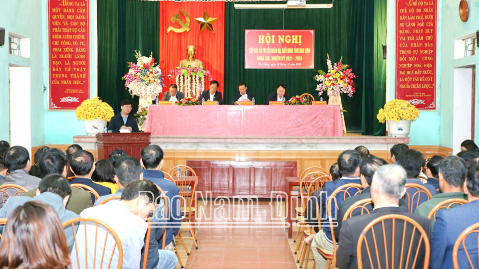 Thực hiện chương trình tiếp xúc cử tri trước kỳ họp thường lệ cuối năm 2023 HĐND tỉnh khóa XIX, ngày 16-11, đồng chí Nguyễn Phùng Hoan, Ủy viên Ban TVTU, Phó Chủ tịch Thường trực HĐND tỉnh và các đại biểu HĐND tỉnh tiếp xúc cử tri thuộc đơn vị bầu cử số 5 gồm các xã, thị trấn: Yên Đồng, Yên Hồng, Yên Quang, Yên Bằng, Yên Cường, Yên Lộc, Yên Tiến, Yên Nhân, Yên Phúc, Yên Trị, Yên Lương, Yên Khang, Yên Ninh và thị trấn Lâm (Ý Yên).