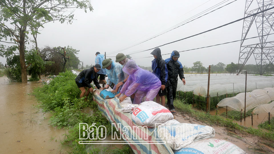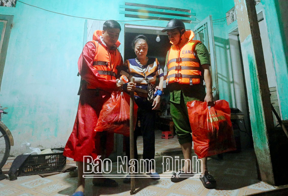 Trong đêm 10 và sáng 11/9, Công an thành phố Nam Định huy động hơn 400 lượt cán bộ, chiến sĩ khẩn trương vận động người dân, đặc biệt là người già, trẻ em, phụ nữ mang thai, người khuyết tật, tại hai thôn Hồng Hà 1 và Hồng Hà 2 di chuyển ra khỏi vùng nguy hiểm, đến nơi an toàn.