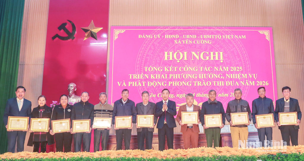 Tại hội nghị, Đảng ủy, UBND, Ủy ban MTTQ xã Yên Cường đã khen thưởng, biểu dương các tập thể, cá nhân có thành tích xuất sắc trong các phong trào thi đua năm 2025; đồng thời phát động phong trào thi đua năm 2026.