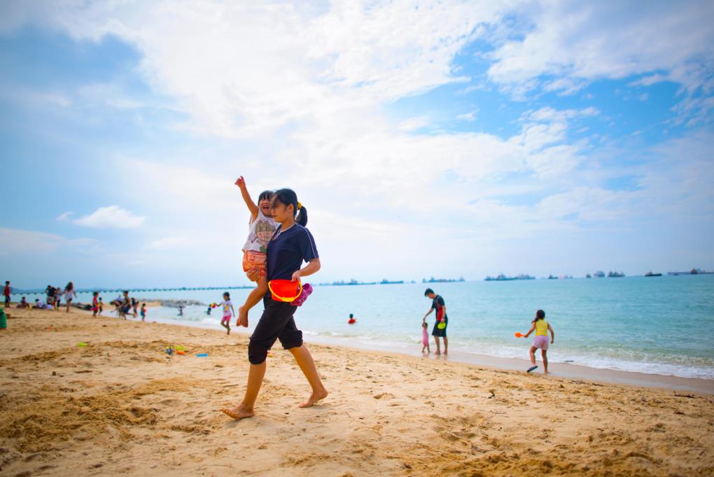 Bãi biển xanh trong, nắng vàng cùng bờ cát trắng ở East Coast Park luôn là điểm đến vui chơi lý tưởng cho cả gia đình dịp hè. Ảnh: TIH