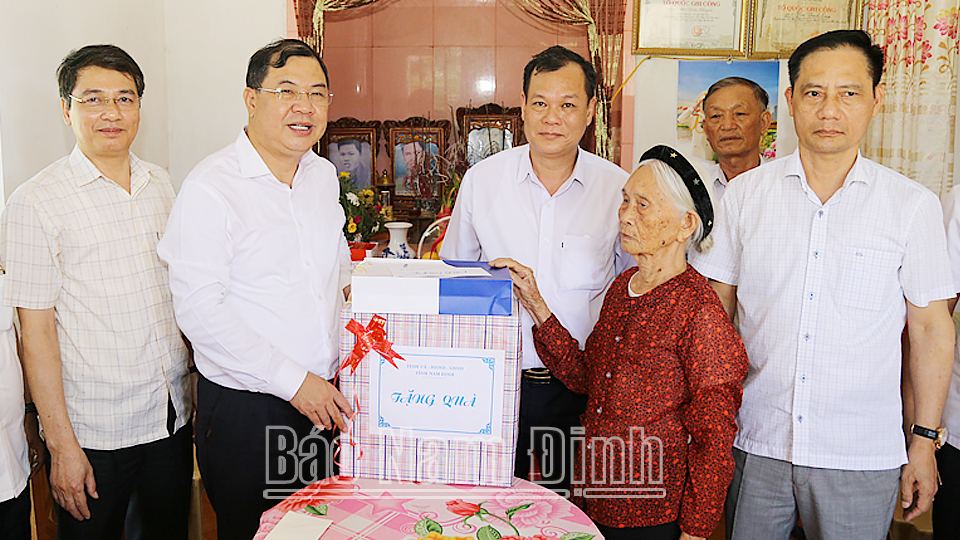 hân kỷ niệm 75 năm Ngày Thương binh - Liệt sĩ (27-7-1947 - 27-7-2022), ngày 25-7, các đồng chí: Phạm Gia Túc, Ủy viên BCH Trung ương Đảng, Bí thư Tỉnh ủy; Lê Quốc Chỉnh, Phó Bí thư Thường trực Tỉnh ủy, Chủ tịch HĐND tỉnh, Trưởng đoàn Đoàn đại biểu Quốc hội tỉnh đã đi thăm, tặng quà gia đình chính sách, người có công ở các huyện: Giao Thủy, Hải Hậu, Trực Ninh.