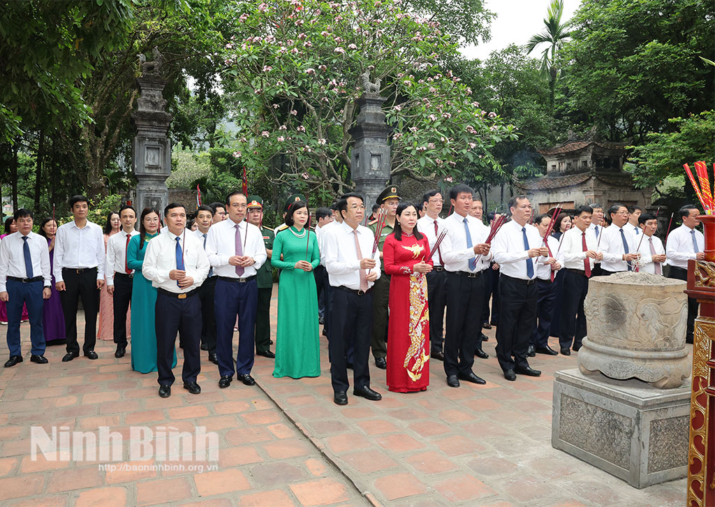 Tại Khu di tích Quốc gia đặc biệt Cố đô Hoa Lư, Đoàn đại biểu Tỉnh ủy, HĐND, UBND, Ủy ban MTTQ Việt Nam tỉnh đã thành kính dâng hương tưởng niệm Đức Đinh Tiên Hoàng Đế, người có công đánh dẹp và thu phục 12 sứ quân, lập nên Nhà nước phong kiến Trung ương tập quyền đầu tiên ở Việt Nam, mở ra thời kỳ độc lập và phát triển mới cho dân tộc.