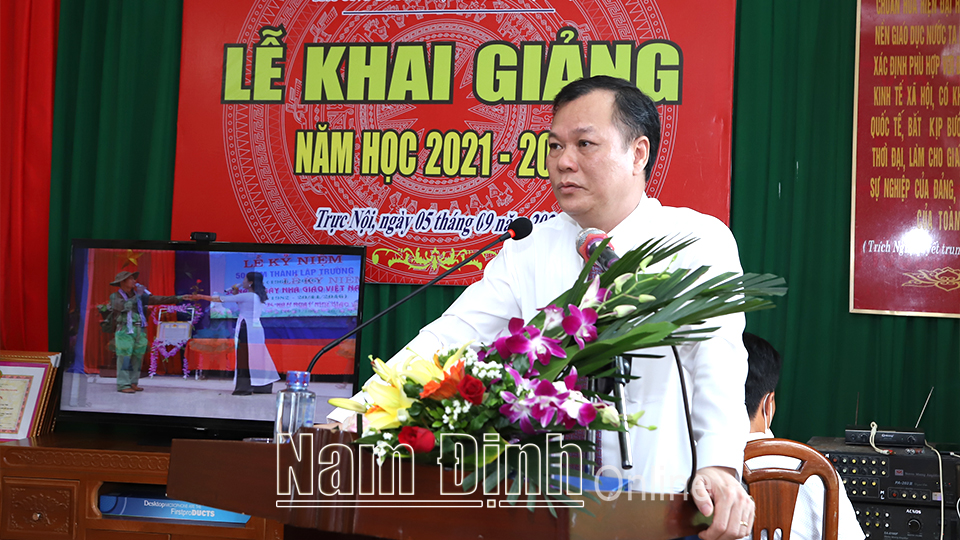 Phát biểu chúc mừng nhà trường, đồng chí Phó Bí thư Thường trực Tỉnh ủy Lê Quốc Chỉnh biểu dương những kết quả đạt được của thầy và trò Trường THCS Trực Nội và đề nghị tập thể cán bộ, giáo viên và học sinh trong nhà trường tiếp tục phấn đấu duy trì những thành tích đạt được. Bước vào năm học mới, nhà trường có phương án tổ chức dạy và học phù hợp và đạt hiệu quả, chất lượng, bám sát chương trình giáo dục, thực hiện tốt công tác phòng chống dịch COVID-19; tiếp tục khắc phục khó khăn, thi đua dạy tốt, có nhiều sáng kiến nâng cao hơn nữa chất lượng dạy học; tiếp tục phấn đấu dạy tốt - học tốt, xứng đáng với truyền thống hiếu học của quê hương. Đồng chí cũng đề nghị huyện, xã tiếp tục quan tâm hơn nữa để nâng cao chất lượng cơ sở vật chất, chất lượng giáo dục của ngành Giáo dục của huyện nói chung và Trường THCS Trực Nội nói riêng.