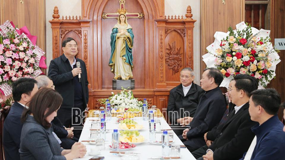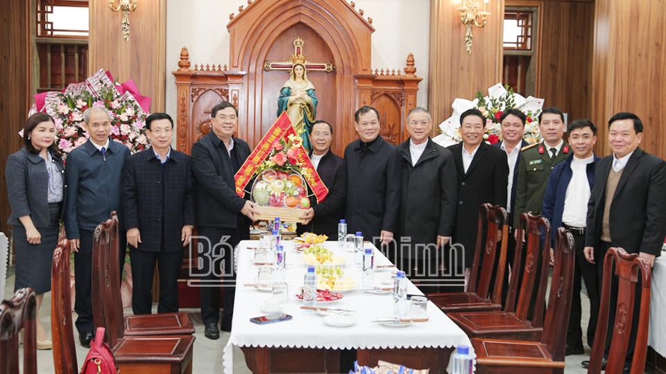 Nhân dịp đón mừng năm mới 2024, chiều 23-1, các đồng chí: Phạm Gia Túc, Ủy viên BCH Trung ương Đảng, Bí thư Tỉnh ủy; Lê Quốc Chỉnh, Phó Bí thư Thường trực Tỉnh ủy, Chủ tịch HĐND tỉnh, Trưởng đoàn Đoàn đại biểu Quốc hội tỉnh; Phạm Đình Nghị, Phó Bí thư Tỉnh ủy, Chủ tịch UBND tỉnh đã đến thăm, chúc mừng Giáo xứ Phú An, thị trấn Cát Thành (Trực Ninh). Cùng đi với các đồng chí Thường trực Tỉnh ủy có các đồng chí Ủy viên Ban TVTU: Đoàn Văn Hùng, Chủ tịch Ủy ban MTTQ tỉnh; Trần Minh Thắng, Trưởng Ban Dân vận Tỉnh ủy; lãnh đạo Công an tỉnh, Văn phòng Tỉnh ủy và huyện Trực Ninh.