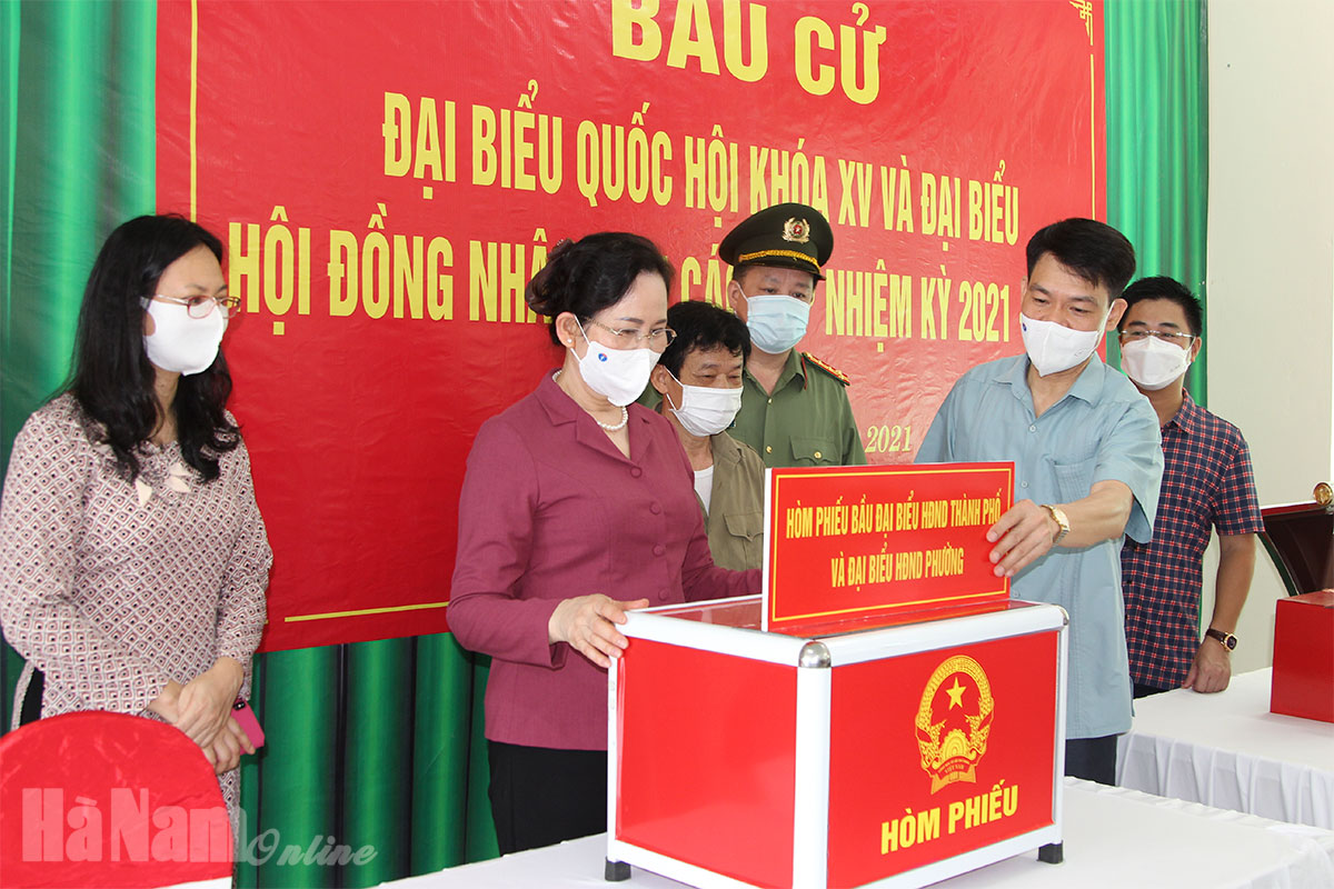 Cũng trong sáng 22/5, đồng chí Bí thư Tỉnh ủy và đoàn công tác đã đi kiểm tra công tác chuẩn bị bầu cử ở một số khu vực bỏ phiếu của thành phố Phủ Lý.