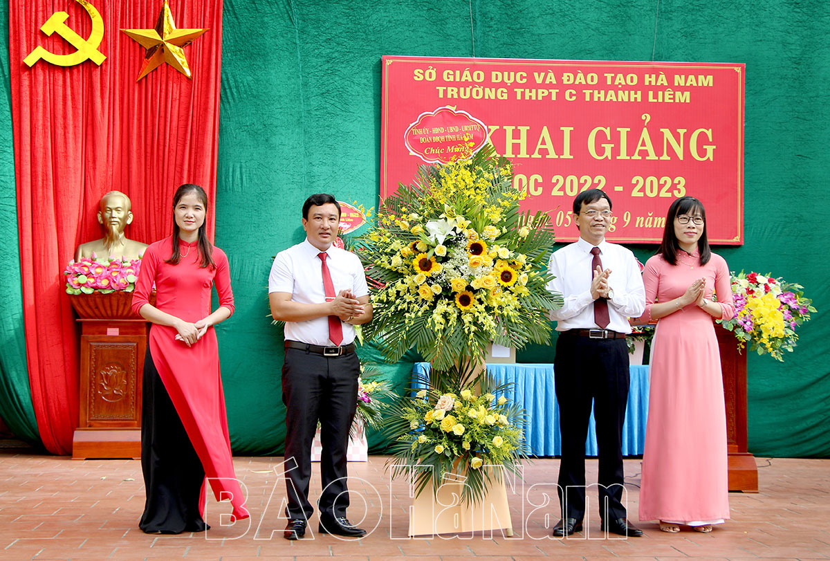 Phát biểu tại buổi lễ, đồng chí Đặng Đình Thoảng, Trưởng ban Tổ chức Tỉnh ủy ghi nhận và biểu dương những kết quả đã đạt được của thầy và trò trường THPT C Thanh Liêm trong năm học vừa qua. Mặc dù còn gặp nhiều khó khăn về cơ sở vật chất, nhưng với tâm huyết, sự tận tụy với nghề của đội ngũ các thầy cô giáo, sự quan tâm chăm lo của chính quyền địa phương và nhân dân với giáo dục, chất lượng giáo dục của nhà trường từng bước được nâng lên. Đồng chí mong muốn, trong năm học 2022-2023, thầy và trò nhà trường tiếp tục rèn luyện đạo đức, bồi đắp lý tưởng sống, thi đua dạy tốt – học tốt, thúc đẩy sự nghiệp giáo dục của Hà Nam ngày một tốt hơn.