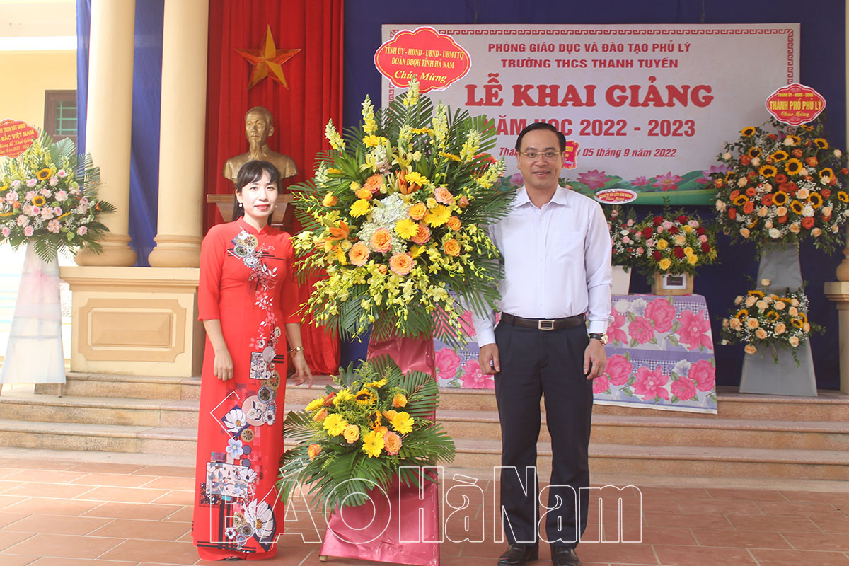 Thay mặt Tỉnh ủy, HĐND, UBND tỉnh, đồng chí Đào Đình Tùng, Ủy viên BTV Tỉnh ủy, Trưởng ban Nội chính Tỉnh ủy đã gửi lời chúc mừng tới tập thể cán bộ, giáo viên, học sinh trường THCS Chuyên Ngoại nói riêng, ngành GD&ĐT thị xã Duy Tiên nói chung, đồng thời tặng hoa chúc mừng thầy và trò nhà trường nhân dịp khai giảng. Cũng nhân dịp này, một số nhà hảo tâm đã dành tặng 10 suất học bổng và góc học tập mới cho các em học sinh có hoàn cảnh khó khăn, động viên các em tiếp tục vươn lên và có nhiều thành tích cao trong năm học mới 2022 – 2023.
