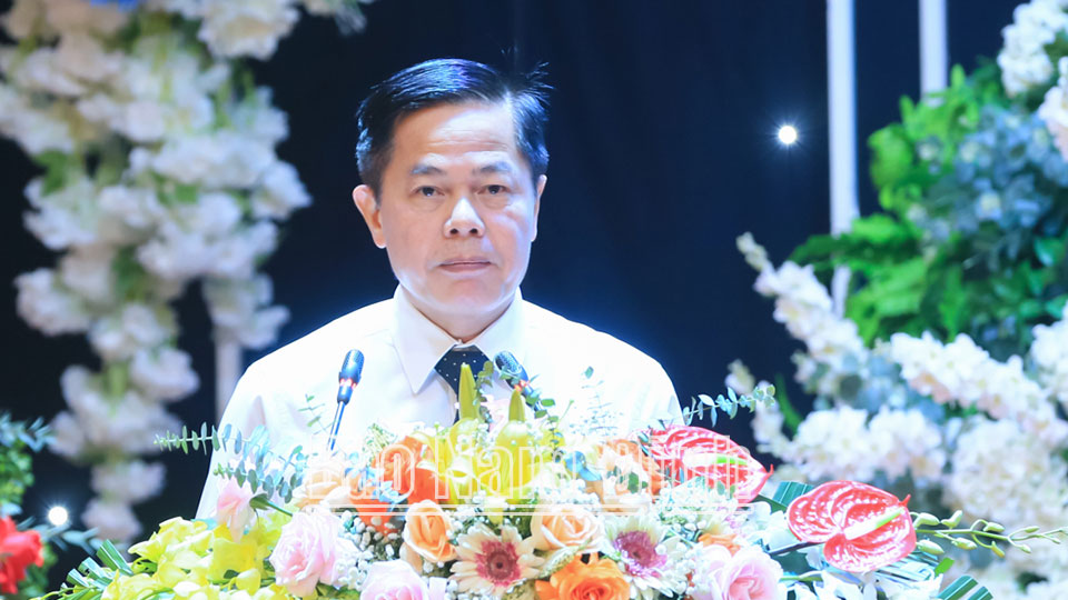 | Đồng chí Phạm Gia Túc, Uỷ viên BCH Trung ương Đảng, Bí thư Tỉnh uỷ và các đồng chí lãnh đạo tỉnh dự hội nghị. |