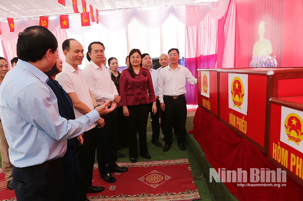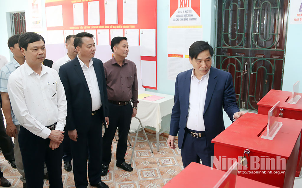 Đồng chí Phó Chủ tịch UBND tỉnh lưu ý, tại một vài điểm bỏ phiếu cần xem xét bổ sung, hoàn thiện hòm phiếu đúng kích cỡ, bàn ghi phiếu phải có vách ngăn, bảo đảm khoảng cách... theo đúng quy định. Cần có các phương án ứng phó với các tình huống thời tiết để bảo đảm việc bỏ phiếu của nhân dân được thực hiện trang nghiêm, đầy đủ, an toàn, tạo khí thế thi đua sôi nổi, đoàn kết, phấn khởi. Nếu có vấn đề phát sinh phải kịp thời báo cáo Ủy ban Bầu cử tỉnh để xin ý kiến chỉ đạo kịp thời.