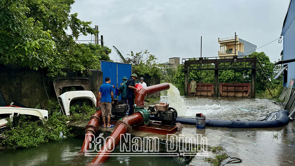 Đặc biệt, trong ngày 11/9, thành phố đã bố trí tăng cường trạm bơm dã chiến (2 máy bơm, công suất 500 m3/giờ và 300 m3/giờ) tại khu vực Cống phai T3-11 để bơm tiêu thoát nước ra sông Vĩnh Giang; đây là một trong những điểm thoát nước chính của nội đô thành phố Nam Định.