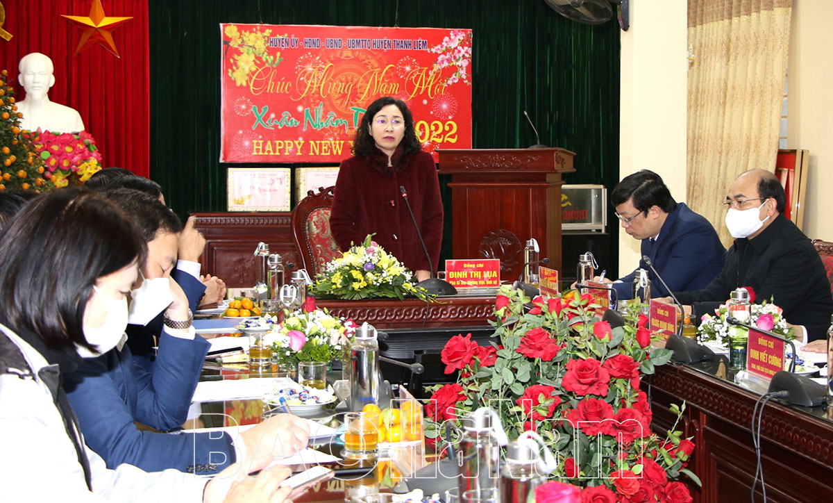 Đồng chí Phó Bí thư Thường trực Tỉnh ủy đã ghi nhận, biểu dương những kết quả mà Đảng bộ, chính quyền và nhân dân huyện Thanh Liêm đạt được trong thực hiện các nhiệm vụ chính trị. Bước sang năm mới, đồng chí Phó Bí thư Thường trực Tỉnh ủy đề nghị, các ngành, các cấp trong toàn huyện tiếp tục đẩy mạnh công tác tuyên truyền tạo khí thế thực hiện tốt các nhiệm vụ chính trị, nhất là cần cụ thể hóa đối với các nhiệm vụ trọng tâm về xây dựng Đảng và phát triển KT-XH năm 2022. Đảm bảo các điều kiện chăm sóc sức khỏe ban đầu cho nhân dân và phòng chống dịch Covid-19.