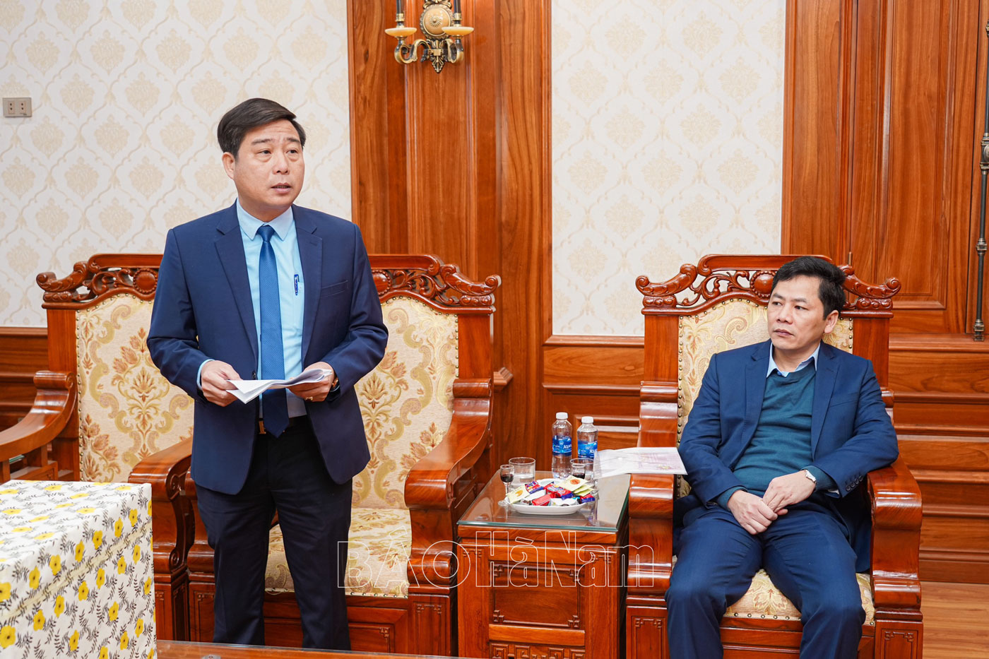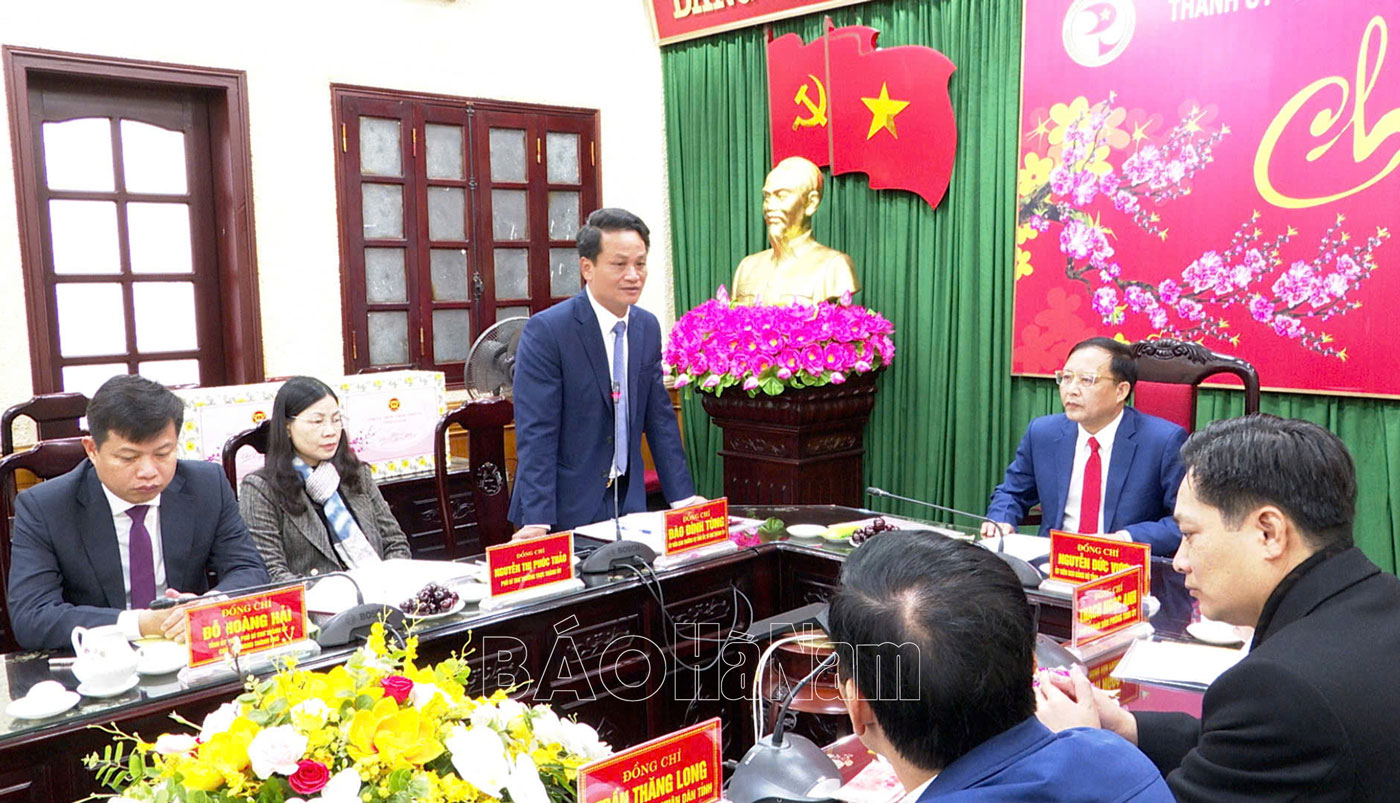 Thay mặt đoàn công tác của tỉnh, đồng chí Phó Chủ tịch UBND tỉnh Nguyễn Đức Vượng ghi nhận, biểu dương công tác chuẩn bị, tổ chức cho nhân dân trên địa bàn vui Xuân, đón Tết. Đặc biệt, các lực lượng tham gia bảo đảm an toàn cho hoạt động bắn pháo hoa tầm cao chào năm mới Ất Tỵ 2025 tại Trung tâm hành chính tỉnh. Đồng chí đề nghị lãnh đạo thành phố chỉ đạo các cơ quan, đơn vị tập trung triển khai, tổ chức thực hiện các chỉ tiêu, nhiệm vụ ngay từ những ngày đầu năm mới 2025 và thực hiện nghiêm giờ giấc làm việc. Chỉ đạo các địa phương tiếp tục triển khai sản xuất vụ Xuân năm 2025 theo kế hoạch; tiếp tục chỉ đạo thực hiện tốt công tác quản lý đô thị, quản lý đất đai, tài nguyên môi trường.