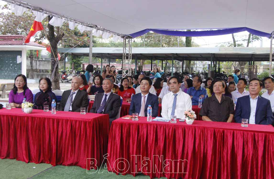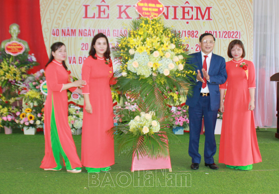 Thay mặt đoàn công tác, đại diện lãnh đạo thị xã Duy Tiên ghi nhận, biểu dương những thành tích đạt được của thầy giáo, cô giáo và học sinh nhà trường trong thời gian qua. Đồng thời mong muốn đội ngũ giáo viên nhà trường tiếp tục nêu cao tinh thần tự học, sáng tạo, yêu nghề, thực sự là những tấm gương về tri thức, đạo đức, tác phong, đáp ứng yêu cầu giáo dục trong giai đoạn hiện nay.