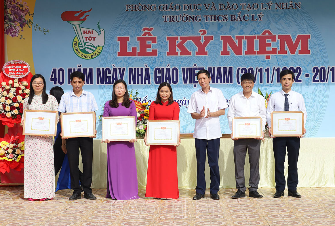 Phát biểu tại buổi lễ, đại diện lãnh đạo nhà trường đã ôn lại truyền thống Ngày Nhà giáo Việt Nam và những thành tích nhà trường đạt được. Nhiều thập kỷ qua các thế hệ cán bộ, giáo viên Trường THCS Bắc Lý luôn cố gắng, phấn đấu với tinh thần, trách nhiệm cao nhất, hết lòng vì học sinh thân yêu, góp phần tô thắm truyền thống vẻ vang của đơn vị Anh hùng. Năm học 2021-2022, nhà trường xếp thứ 2/22 trường THCS trong huyện; đạt danh hiệu Tập thể lao động Xuất sắc, được Chủ tịch UBND tỉnh tặng Bằng khen. Có 29 thầy cô giáo đạt danh hiệu lao động tiên tiến; có 6 thầy cô giáo đạt danh hiệu chiến sĩ thi đua cấp cơ sở, 4 thầy cô giáo được Giám đốc Sở Giáo dục & Đào tạo tặng giấy khen, 5 thầy cô giáo được Chủ tịch UBND huyện Lý Nhân tặng Giấy khen.