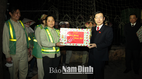 Thăm và chúc Tết cán bộ, CNV Cty TNHH một thành viên Môi trường Nam Định, đồng chí Chủ tịch UBND tỉnh đã hoan nghênh và biểu dương những thành tích mà tập thể Cty đã đạt được trong năm 2015. Đồng chí Chủ tịch UBND tỉnh nhấn mạnh, trong năm 2016, cán bộ, CNV Cty cần đoàn kết, nỗ lực hơn nữa nhằm không ngừng nâng cao năng lực công tác thu gom và xử lý rác thải, xây dựng môi trường văn minh đô thị xanh - sạch - đẹp. Đồng chí Chủ tịch UBND tỉnh đã đi thăm và tặng quà công nhân các tổ thu rác của Cty làm nhiệm vụ đêm Giao thừa./.