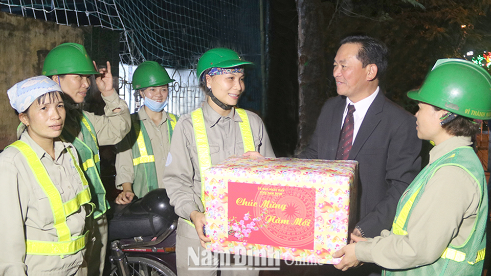 Đ ồng chí Nguyễn Phùng Hoan, Tỉnh ủy viên, Phó Chủ tịch UBND tỉnh đã đi thăm, chúc Tết cán bộ, công nhân viên Công ty trách nhiệm hữu hạn một thành viên Môi trường Nam Định.
