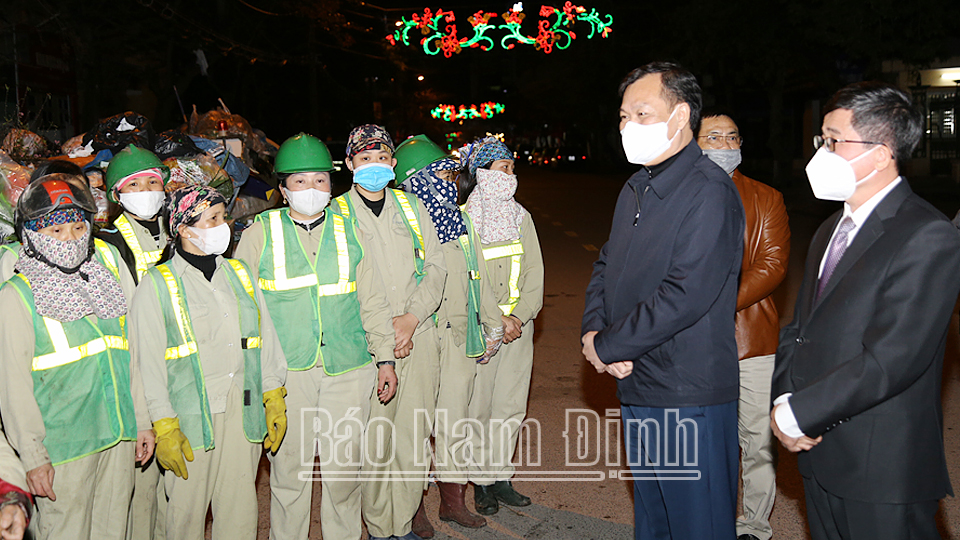 Đồng chí Phó Bí thư Thường trực Tỉnh ủy đã trực tiếp đến thăm, động viên, chúc Tết các cán bộ, công nhân viên Công ty đang thực hiện nhiệm vụ thu gom rác thải tại điểm tập kết rác trên đường Lê Hồng Phong và đường Phù Nghĩa.