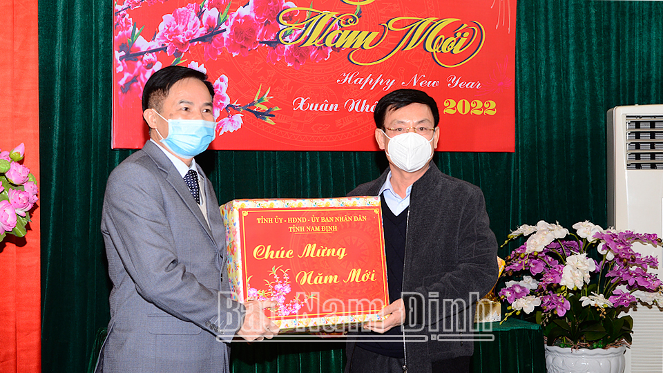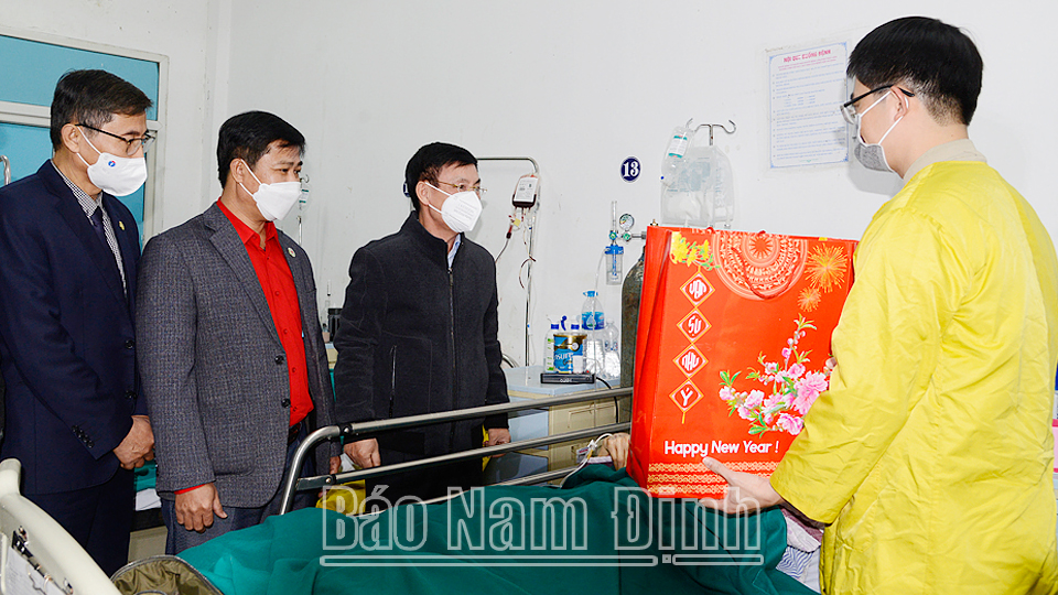 Đ ồng chí Phạm Đình Nghị, Phó Bí thư Tỉnh ủy, Chủ tịch UBND tỉnh đã đến thăm, động viên, chúc Tết cán bộ, công chức, viên chức, người lao động và bệnh nhân đang điều trị tại Bệnh viện Đa khoa tỉnh. Cùng đi với đồng chí Chủ tịch UBND tỉnh có các đồng chí lãnh đạo UBND thành phố Nam Định, Sở Y tế, Hội Chữ Thập đỏ tỉnh và Văn phòng UBND tỉnh.