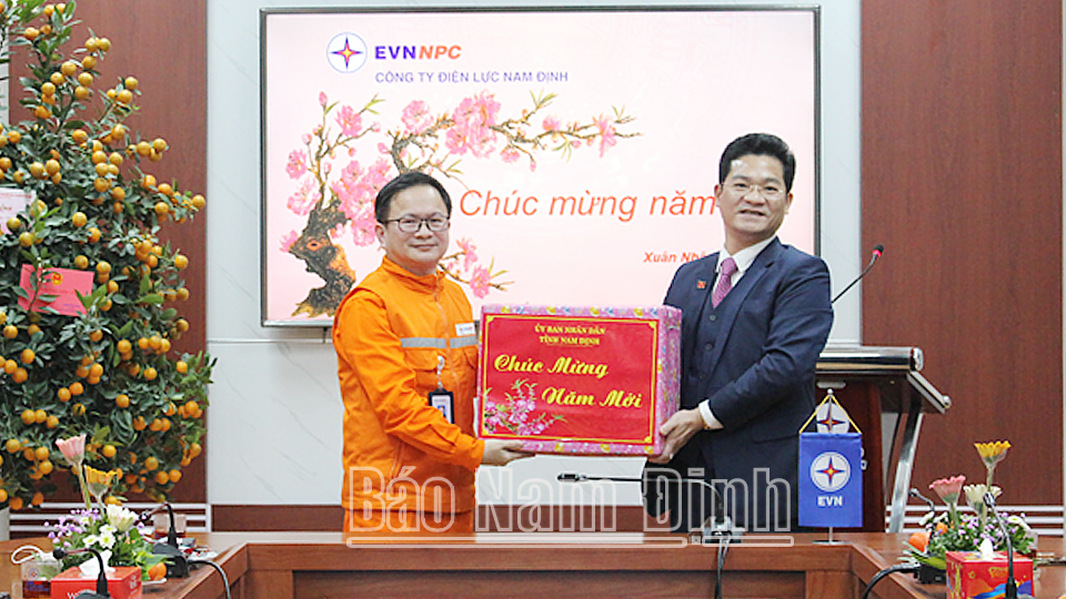 Đ ồng chí Trần Anh Dũng, Ủy viên Ban TVTU, Phó Chủ tịch Thường trực UBND tỉnh đã đến thăm, chúc Tết, động viên cán bộ, công nhân viên Công ty Điện lực Nam Định.