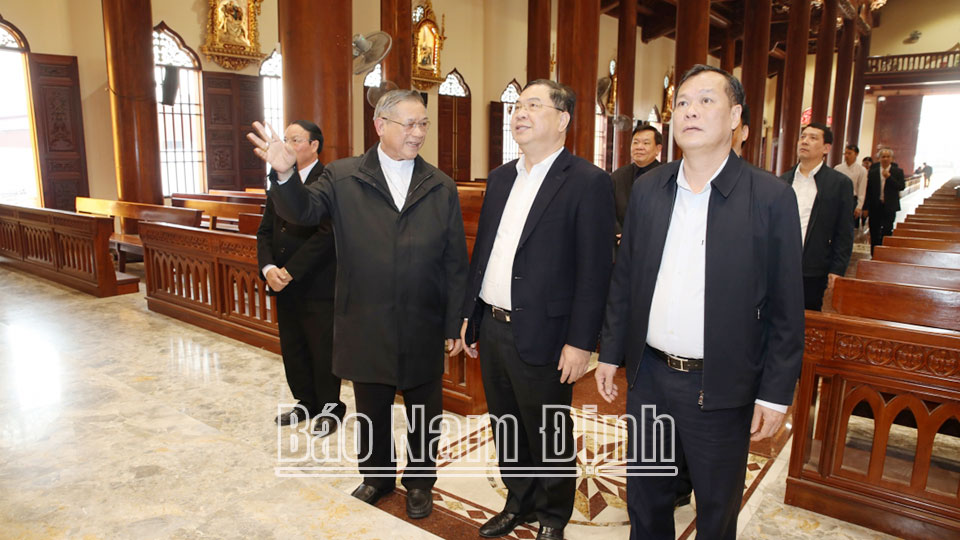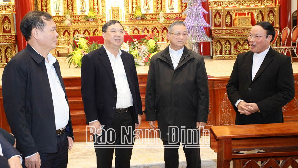 Nhân dịp chào đón năm mới 2024, chiều 27-12, các đồng chí: Phạm Gia Túc, Ủy viên BCH Trung ương Đảng, Bí thư Tỉnh ủy; Lê Quốc Chỉnh, Phó Bí thư Thường trực Tỉnh ủy, Chủ tịch HĐND tỉnh, Trưởng đoàn Đoàn đại biểu Quốc hội tỉnh đã đến thăm nhà thờ Trung Lao, xã Trung Đông (Trực Ninh). Cùng đi có các đồng chí Ủy viên Ban TVTU: Đoàn Văn Hùng, Chủ tịch Ủy ban MTTQ tỉnh; Trần Minh Thắng, Trưởng Ban Dân vận Tỉnh ủy; lãnh đạo Công an tỉnh và huyện Trực Ninh.