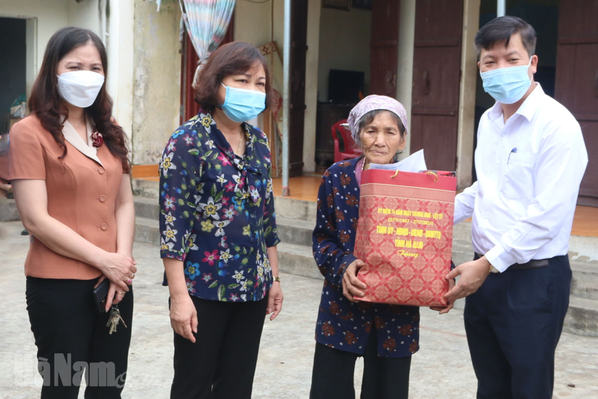 * Đoàn do Đại tá Lường Văn Thắng, Ủy viên BTV Tỉnh ủy, Chỉ huy trưởng Bộ CHQS tỉnh làm trưởng đoàn thăm, tặng quà tại huyện Lý Nhân. Cùng đi có lãnh đạo đại diện MTTQ tỉnh, Sở Lao động, Thương binh và Xã hội và huyện Lý Nhân.