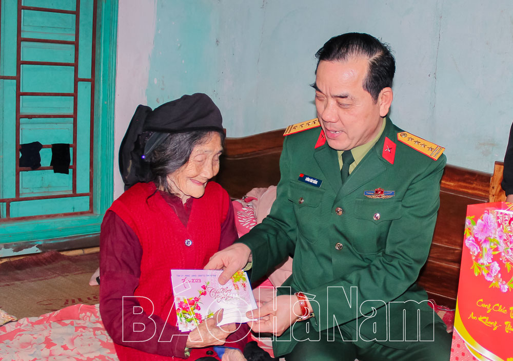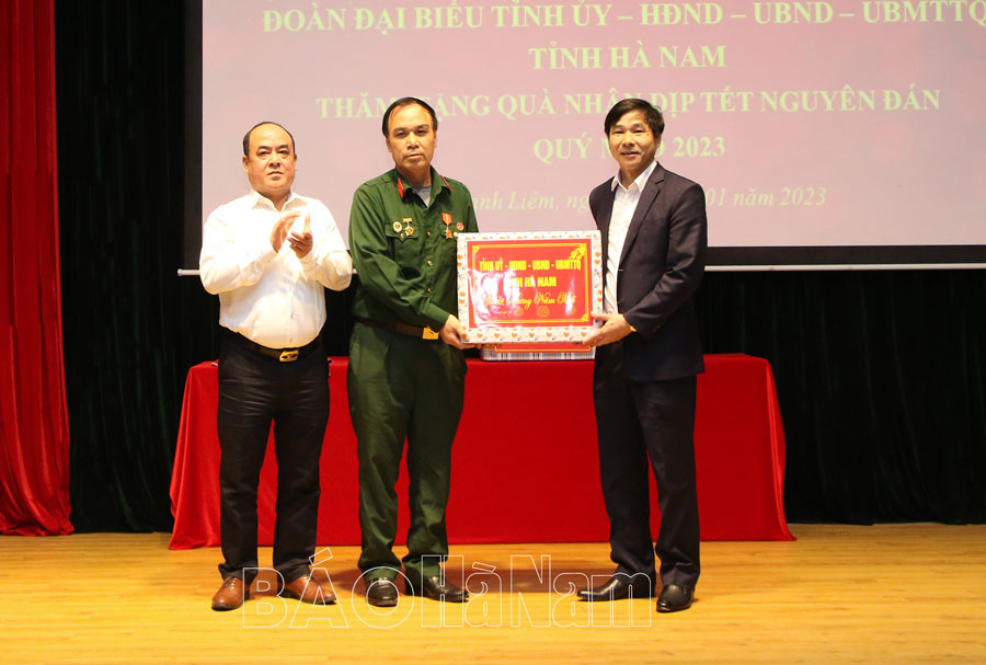 *Nhân dịp đón Tết Nguyên đán Quý Mão 2023, chiều 11/1, Đoàn công tác của tỉnh do đồng chí Nguyễn Đức Toàn, Ủy viên BTV Tỉnh ủy, Bí thư Thành ủy, Chủ tịch HĐND thành phố Phủ Lý làm trưởng đoàn đã đến thăm, chúc Tết, tặng quà của Chủ tịch nước, của Tỉnh uỷ – HĐND – UBND – Uỷ ban MTTQ tỉnh cho gia đình các đồng chí nguyên Ủy viên BTV Tỉnh ủy, nguyên lãnh đạo UBND tỉnh, các gia đình chính sách, người có công, nạn nhân chất độc da cam, người già neo đơn, người cao tuổi tròn 90 tuổi trên địa bàn thành phố Phủ Lý.