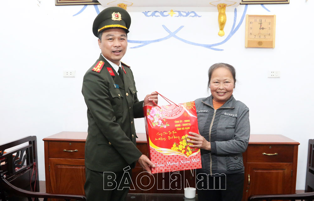 Tặng quà gia đình người có công, đối tượng chính sách hoàn cảnh khó khăn trên địa bàn huyện Lý Nhân, đồng chí Giám đốc Công an tỉnh ân cần thăm hỏi sức khỏe, đời sống vật chất, tinh thần; đồng thời, bày tỏ sự biết ơn sâu sắc đối với công lao to lớn của các thế hệ người có công trong sự nghiệp giải phóng dân tộc, xây dựng, bảo vệ đất nước. Đồng thời, mong muốn các gia đình chính sách tiếp tục phát huy truyền thống, nỗ lực phát triển kinh tế, giáo dục thế hệ con cháu nối tiếp truyền thống yêu nước, tích cực học tập, lao động, đóng góp vào sự phát triển chung của địa phương.