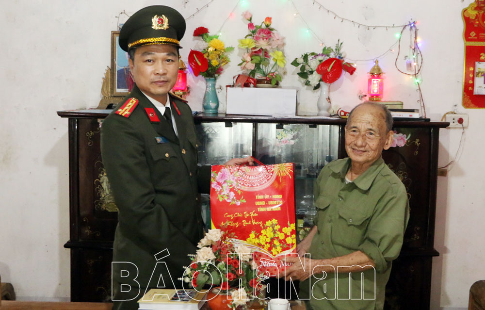 * Đoàn do Đại tá Tô Anh Dũng, Ủy viên BTV Tỉnh ủy, Giám đốc Công an tỉnh làm trưởng đoàn đến thăm, tặng quà gia đình người có công, đối tượng chính sách hoàn cảnh khó khăn trên địa bàn huyện Lý Nhân, gồm các gia đình: Cụ Nguyễn Thị Hoa 100 tuổi được tặng lụa của Chủ tịch nước (thôn 4 Thượng Vĩ); ông Nguyễn Đăng Chuyền (gia đình thương binh tiêu biểu, thôn 2 Hạ Vĩ, Nhân Chính); bà Trần Thị Thay (vợ liệt sĩ, thôn 1 Công Xá); cháu Vũ Việt Đức (trẻ em mồ côi không nơi nương tựa, tổ dân phố Vĩnh Thịnh, thị trấn Vĩnh Trụ).