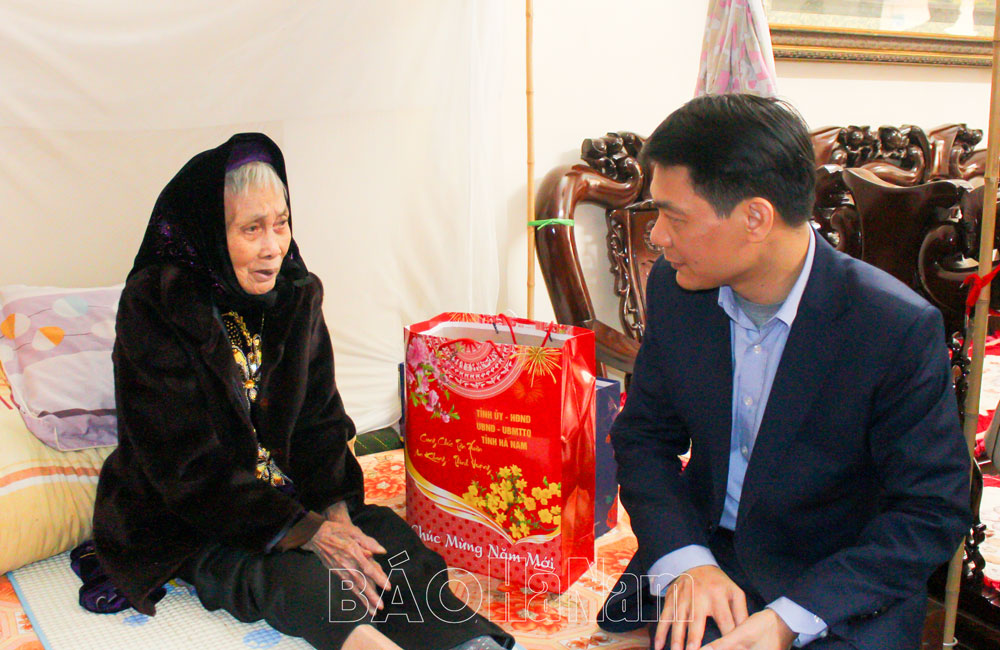 Tại địa phương, đồng chí Phó Chủ tịch UBND tỉnh đến thăm, tặng quà Trung tâm điều dưỡng Thương binh Kim Bảng; tặng quà thương binh nặng Lương Trọng Quỳnh (ở tổ dân phố số 4, thị trấn Ba Sao); cháu Bùi Quang Long, trẻ mồ côi (thôn Đông, xã Khả Phong); cụ Vũ Thị Thái, vợ liệt sỹ (thôn Mã Não, xã Ngọc Sơn). Thừa ủy quyền của Chủ tịch nước, đồng chí Phó Chủ tịch UBND tỉnh tặng lụa, thiệp mừng thọ 100 tuổi và quà cho cụ Đinh Thị Tư (tổ dân phố số 3, thị trấn Quế).