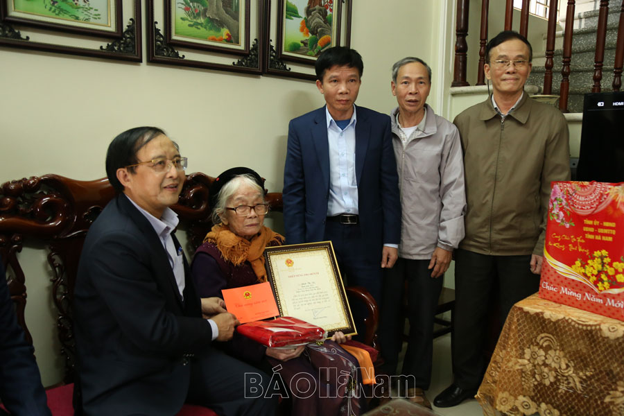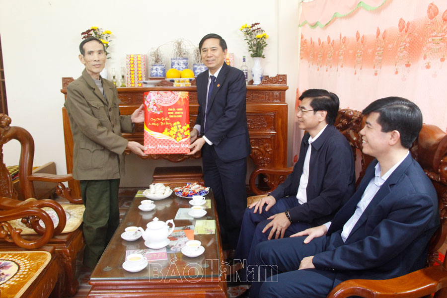 Thay mặt lãnh đạo tỉnh, đồng chí cũng đã đến thăm, tặng quà 5 hộ gia đình đối tượng chính sách (bà mẹ Việt Nam anh hùng, gia đình bệnh binh tiêu biểu), hộ nghèo, người cao tuổi có hoàn cảnh khó khăn tại các xã Nguyên Lý, Công Lý và Nhân Nghĩa (huyện Lý Nhân).