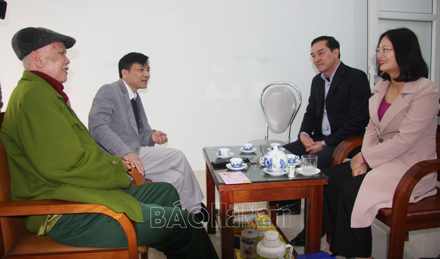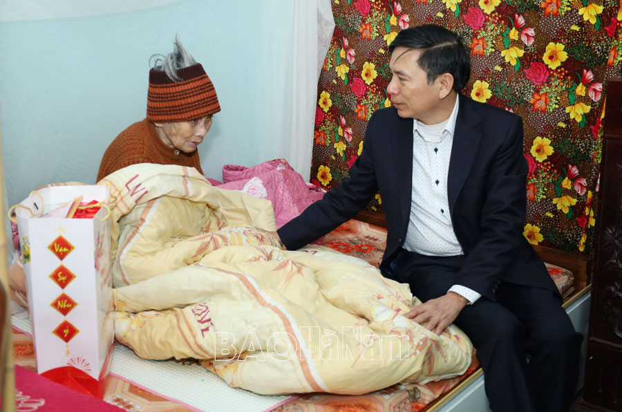 Ngay sau đó, đồng chí Phó Chủ tịch UBND tỉnh Trần Xuân Dưỡng đã đi thăm, tặng quà Tết Bệnh viện Tâm thần tỉnh, Trung tâm Công tác xã hội tỉnh; thăm, tặng quà gia đình người có công, gia đình chính sách, người nghèo trên địa bàn thành phố Phủ Lý, gồm: Mẹ Việt Nam Anh hùng Lại Thị Tý, bệnh binh Lương Duy Minh, ông Nguyễn Tiến Lực (nhiễm chất độc hóa học), bà Đào Thị Thành (người già cô đơn) và mừng thọ cụ Nguyễn Thị Hồng tròn 90 tuổi… Tại các nơi đến thăm, tặng quà, đồng chí Phó Chủ tịch UBND tỉnh ghi nhận, đánh giá cao tinh thần trách nhiệm của các đơn vị và gửi lời chúc Tết, sức khỏe tới cán bộ, y bác sỹ, nhân viên 2 đơn vị; chúc các gia đình người có công, gia đình chính sách, người nghèo… đón mừng năm mới mạnh khỏe, hạnh phúc, an khang, thịnh vượng!