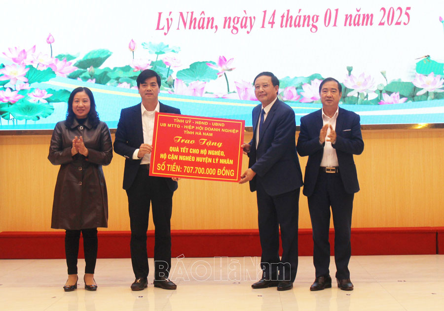 Đoàn lãnh đạo Tỉnh ủy, HĐND, UBND, Ủy ban MTTQ và Hiệp hội Doanh nghiệp tỉnh do đồng chí Nguyễn Đức Vượng. TUV, Phó Chủ tịch UBND tỉnh làm trưởng đoàn đã trao Quỹ vì người nghèo cho huyện Lý Nhân, tặng quà hộ nghèo, cận nghèo và thăm gia đình chính sách, người có công trên địa huyện. Theo phân bổ, huyện Lý Nhân được trao số tiền 707,7 triệu đồng để tặng quà Tết cho 1.289 hộ nghèo, 1.605 hộ cận nghèo trên địa bàn huyện.